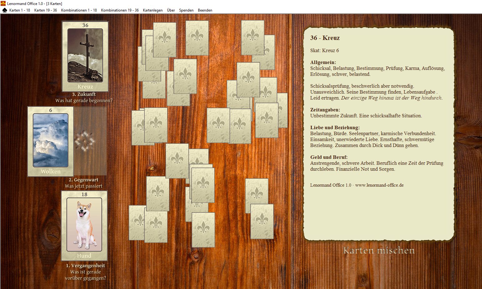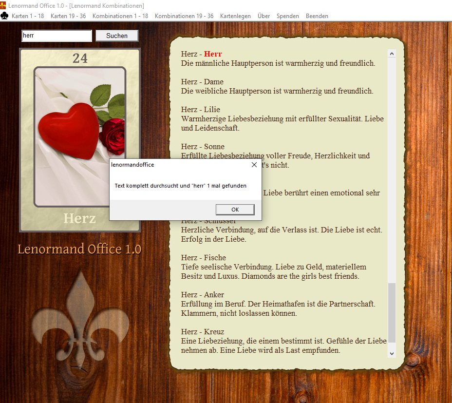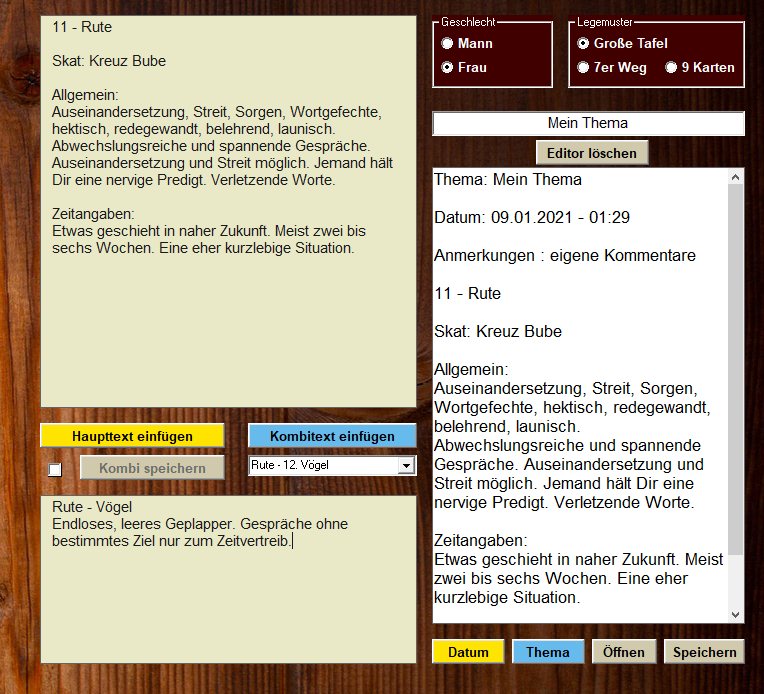 Verwenden Sie die Karten Kombinationen auch für das Kartenlegen mit echten Karten... mit Suchfunktion.