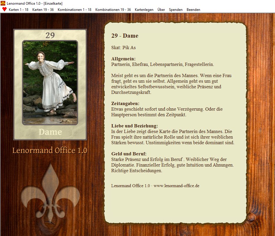 Sehen Sie sich die Einzelkarten und deren Bedeutung an...